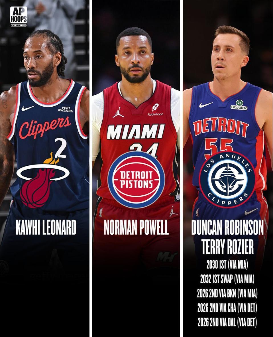 快船得到:鄧肯-羅賓遜、羅齊爾、熱火2030年首輪、2032年熱火首輪互換權、2026年籃網次輪、2026年黃蜂次輪、2026年獨行俠次輪