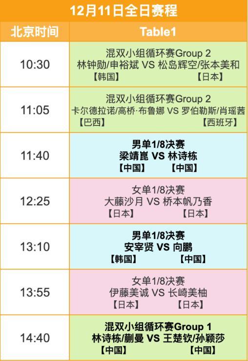 12月11日,申裕斌還將搭檔林鐘勳出戰混雙的比賽,兩人首輪對手是松島輝空/張本美和。