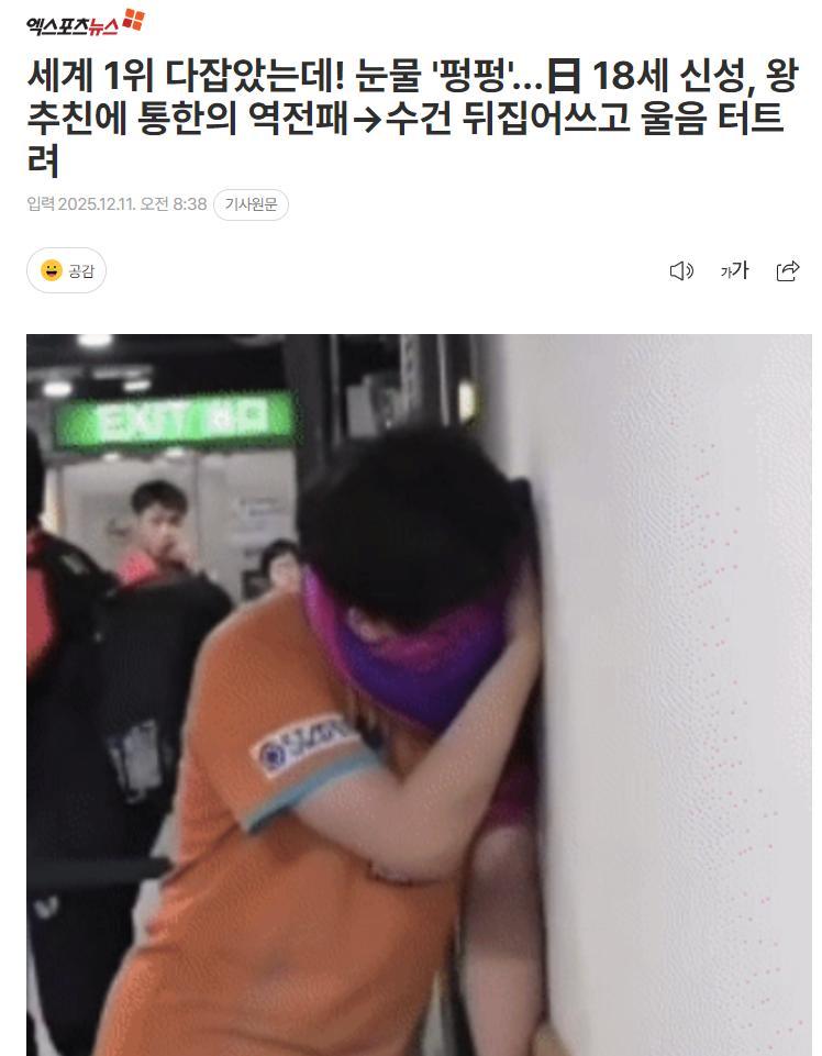 韓國媒體《世博新聞》在北京時間12月11日發文報道了這一結果,標題爲:日本超星淚灑當場,被中國王牌王楚欽逆轉後情緒失控顏面痛哭。這一次韓媒沒有對日乒小將冷嘲熱諷,他們甚至認爲松島輝空會成爲未來日乒的領軍人物,他未來也將還有機會擊敗王楚欽。