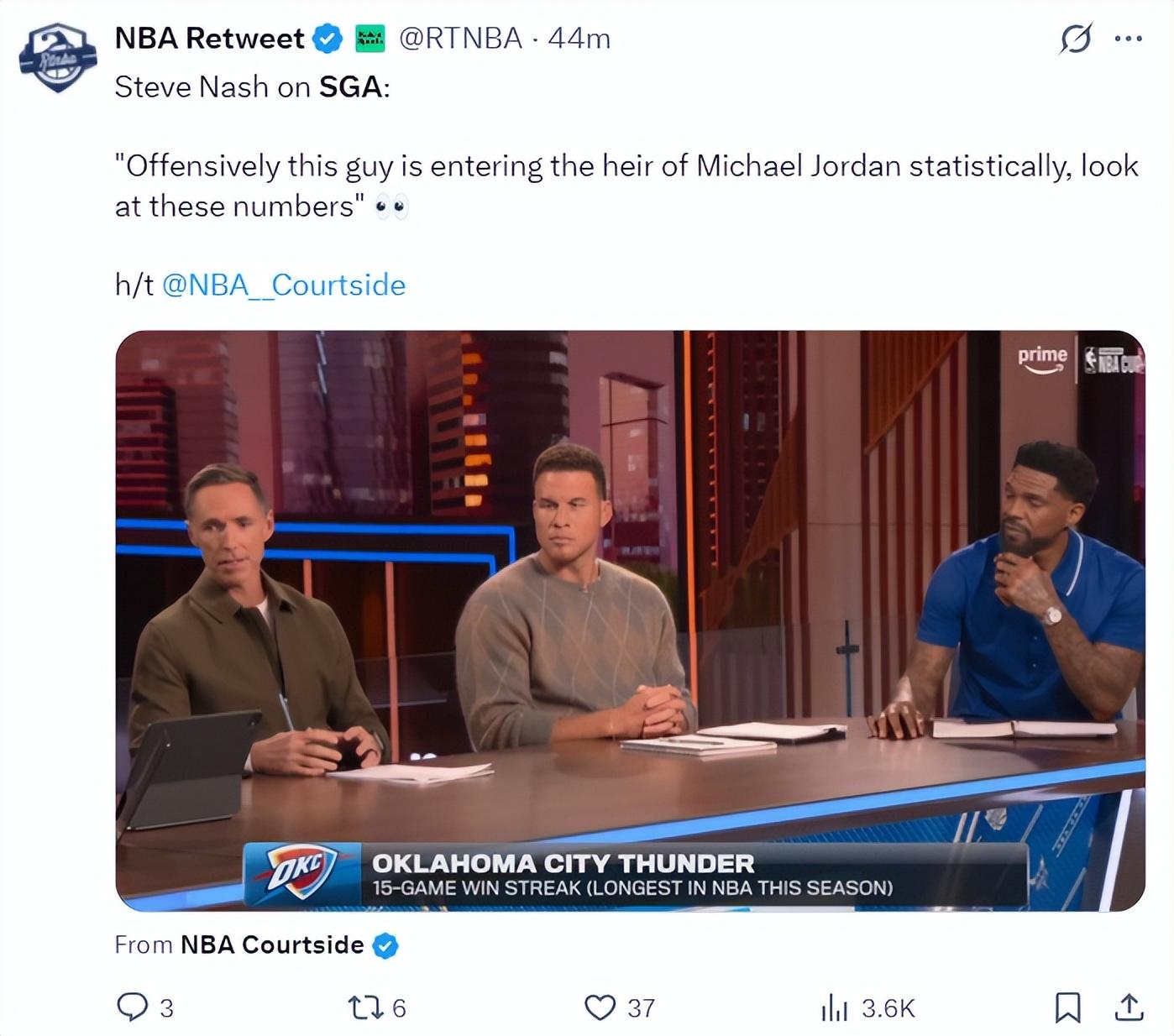 雷霆的強大並不只是因爲亞歷山大一人,因爲亞歷山大缺席他們也能輕鬆拿下勝利。此役亞歷山大開場也沒有太爆炸,完完全全是依靠全隊的防守在領先,SGA首節5中3拿到9分3助攻1蓋帽,但很多人都將這種功績歸功於亞歷山大。
