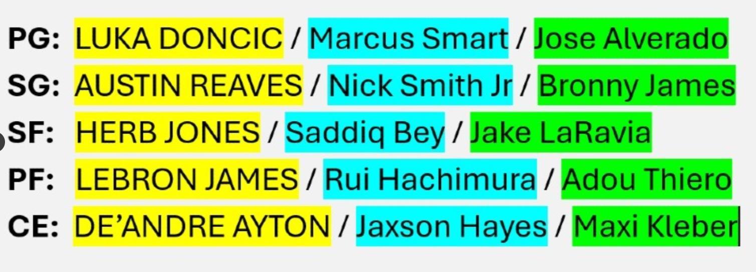 PG:東契奇、斯瑪特、阿爾瓦拉多;