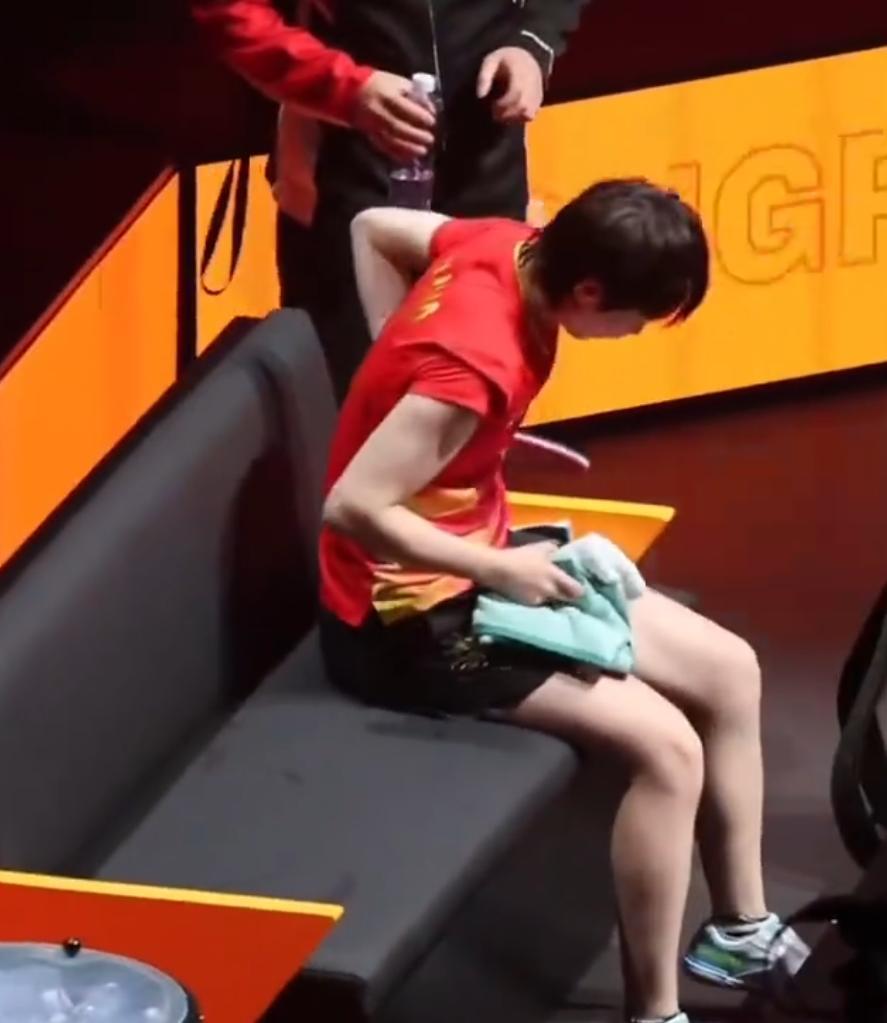 比賽結束后王曼昱想要坐下休息一下,她扶着腰想要坐下,她坐下的動作非常緩慢,這一坐像極了梁靖崑,梁靖崑也飽受腰傷侵擾,梁靖崑是腰椎間盤突出,自今年3月開始就被腰椎傷病侵擾,目前還不知道王曼昱的腰部到底是什麼傷勢。