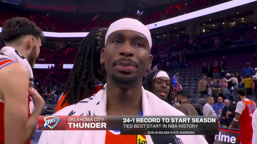 再講一個數據,本賽季雷霆隊淨勝分達到437分,創下 NBA 歷史上賽季前 25 場比賽的最大淨勝分差紀錄。