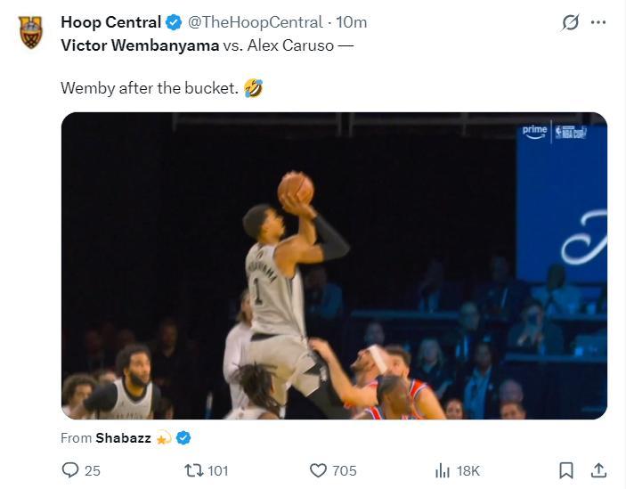 最離譜的就是這一球,馬刺再度反超的一箇中投,文班亞馬都已經脫手了,他竟然在一衆小個子裏撿起來後仰跳投,卡魯索都險些將他的球褲拉掉,這一球他還命中了,者太恐怖了。