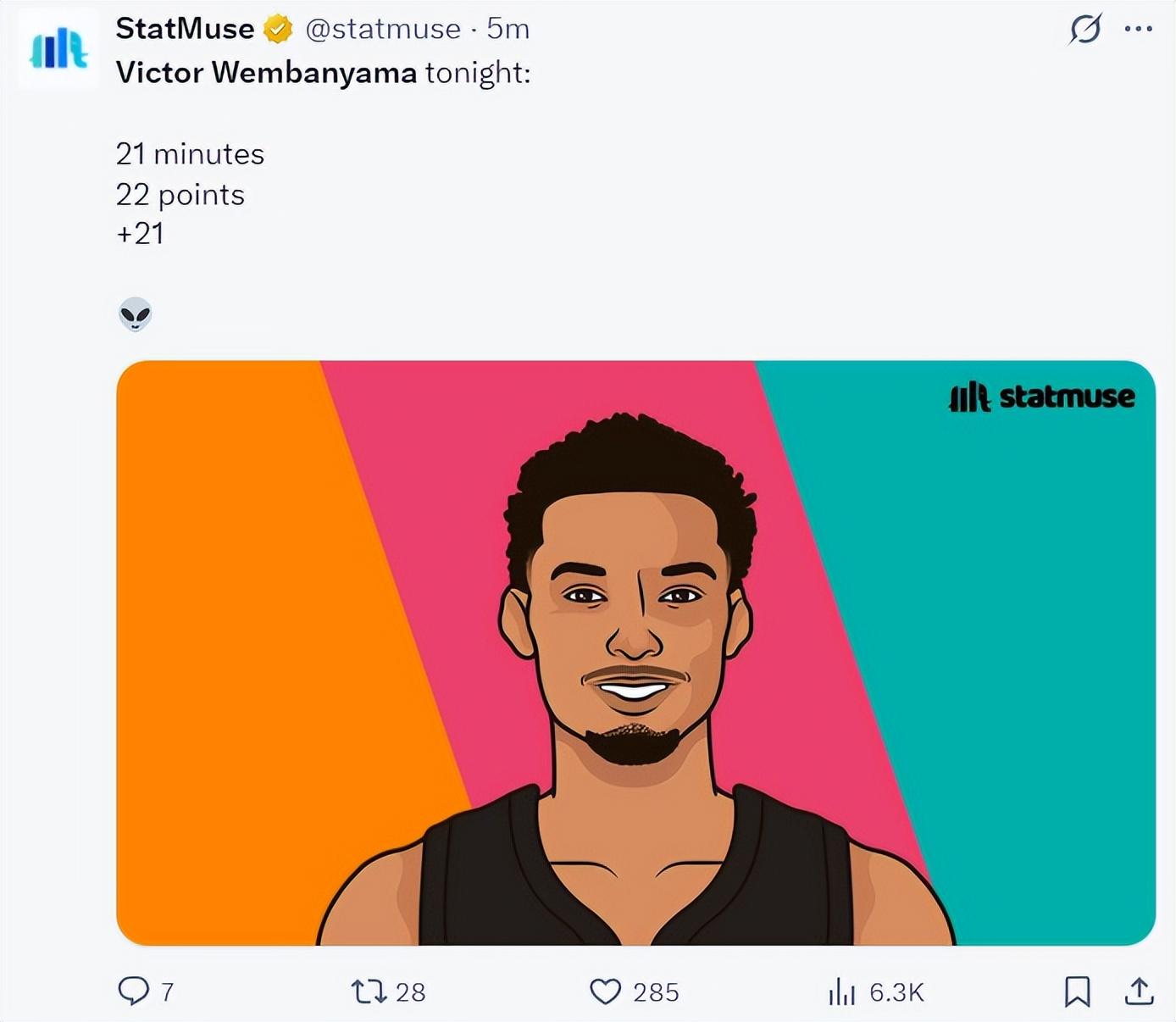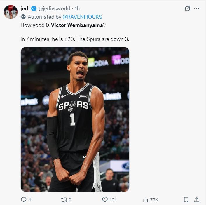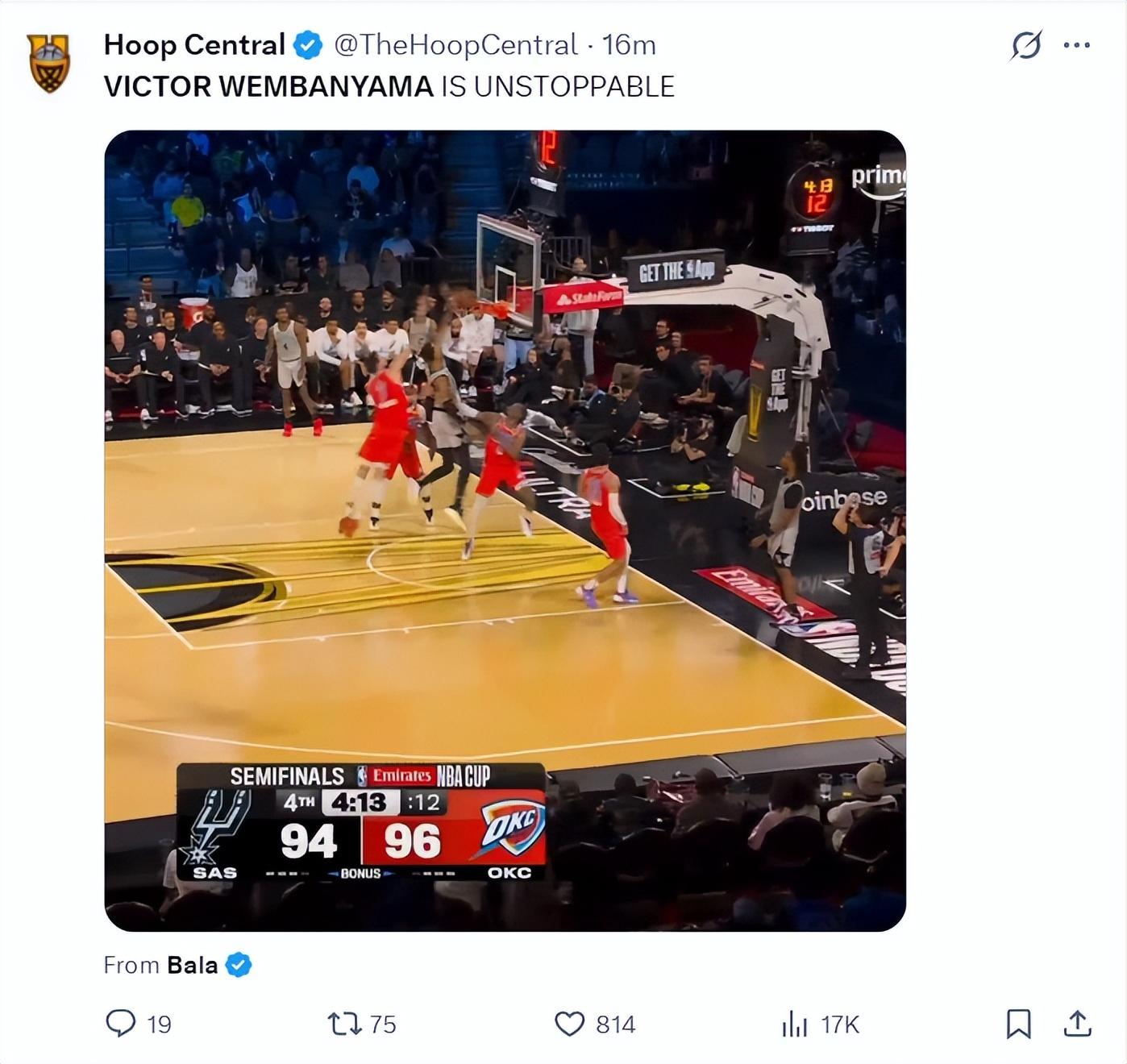 賽後馬刺記者Matt Guzman表示:文班亞馬就是李阿敏前五的球員,他在有極限登場時間限制的杯賽半決賽都可以正負值超過20+,你們覺得呢?