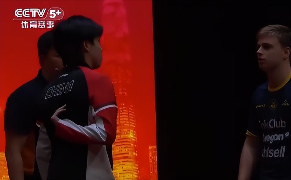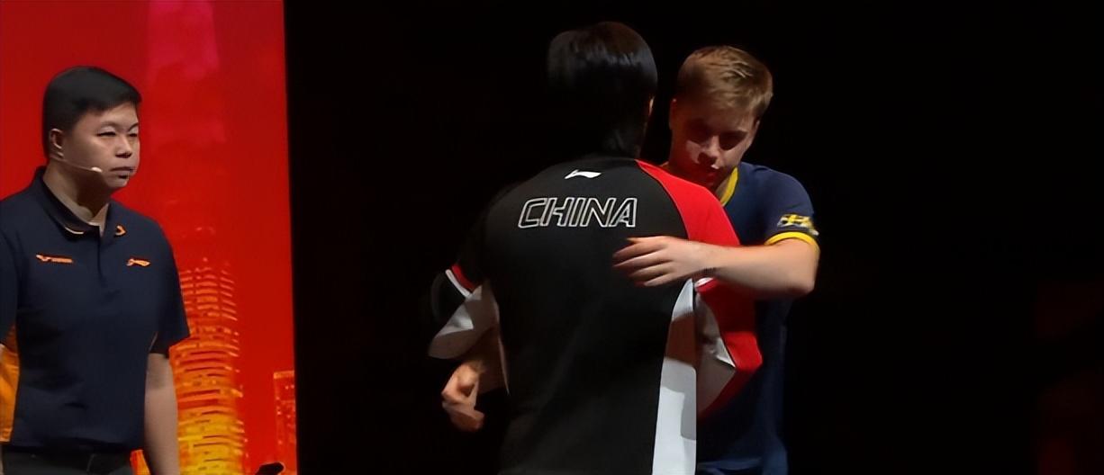 小莫爲王楚欽送上了一個大大的擁抱,兩人還耳語了幾句,然後王楚欽就退場了。