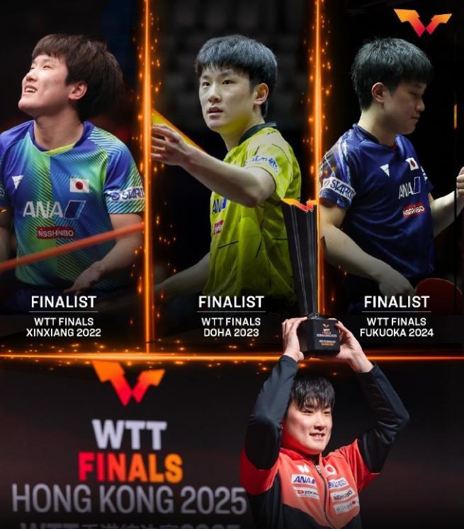 張本智和通過這個總決賽男單冠軍也成爲WTT總決賽史上最年輕的冠軍,他此前四次總決賽三次進入男單決賽最終收穫了三個亞軍。