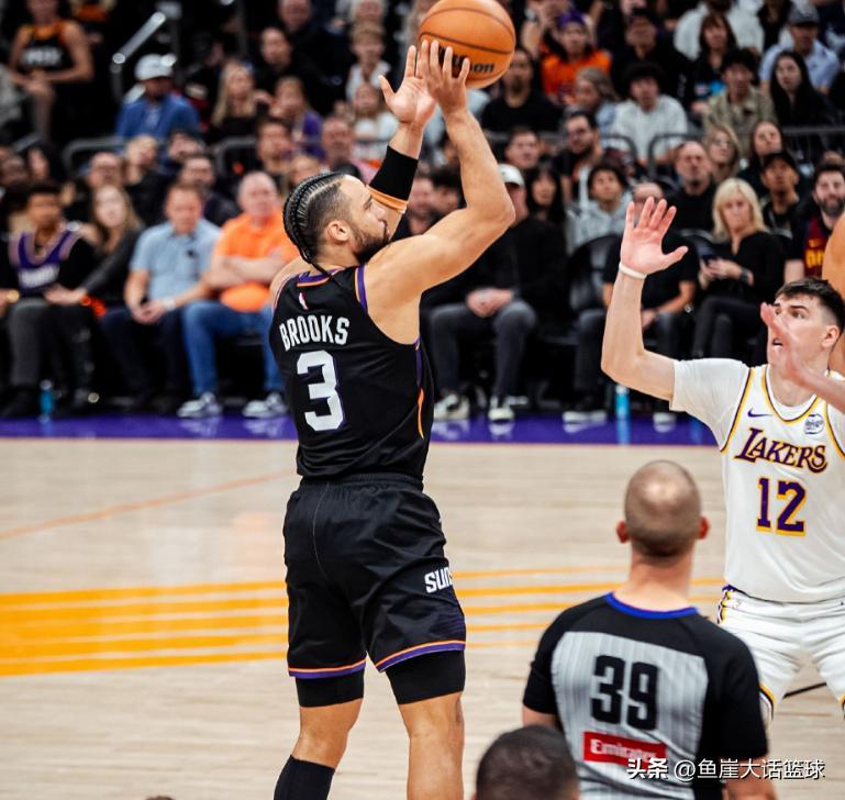這場比賽火箭棄將狄龍也是犯錯陷入犯規麻煩,畢竟這場比賽狄龍的進攻手感還算可以,但是狄龍在第三節比賽早早5犯只能是無奈下場,而當狄龍不在場的時候太陽的防守下降不說,同時太陽的進攻也受到影響,尤其是看到狄龍在第四節比賽攻防兩端都給予太陽幫助的時候,可以說狄龍之前陷入犯規麻煩真的不應該,而且更讓太陽所難受的是,後面狄龍好不容易命中三分幫助太陽反超比分,可之後狄龍卻撞了詹姆斯一下,藉此狄龍被吹第二個技犯被驅逐出場,而這樣的狄龍真的是犯大錯。全場比賽結束狄龍得到了18分1籃板的數據,布克得到了27分6籃板7助攻的數據。