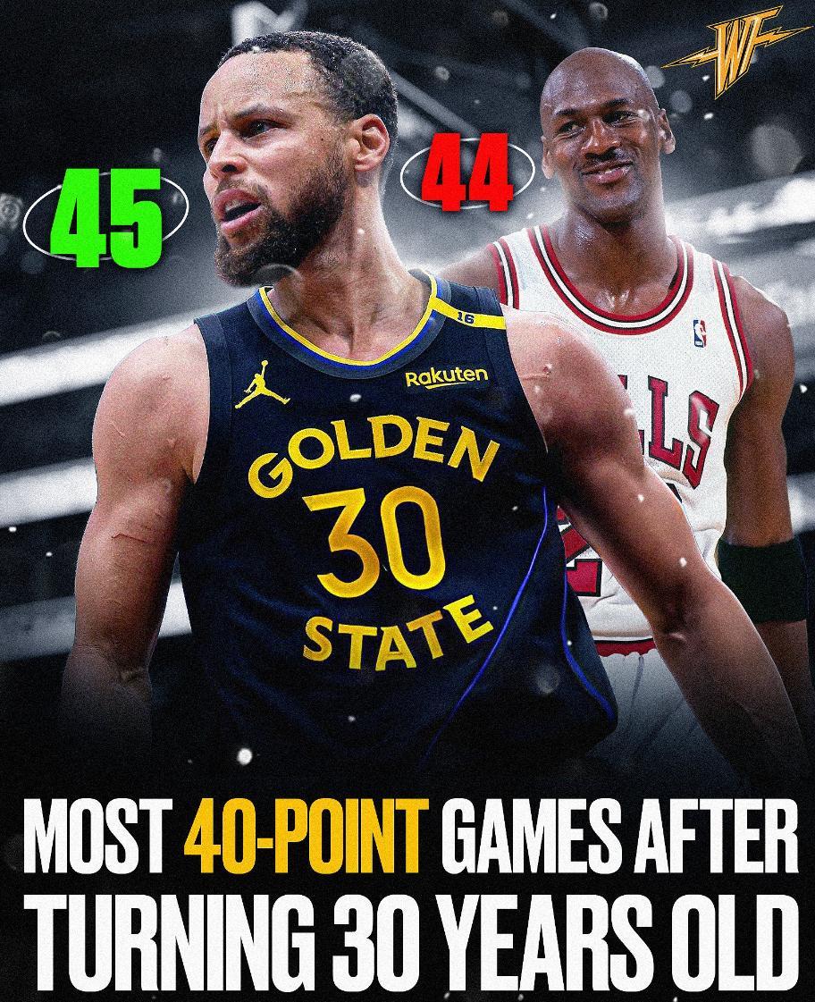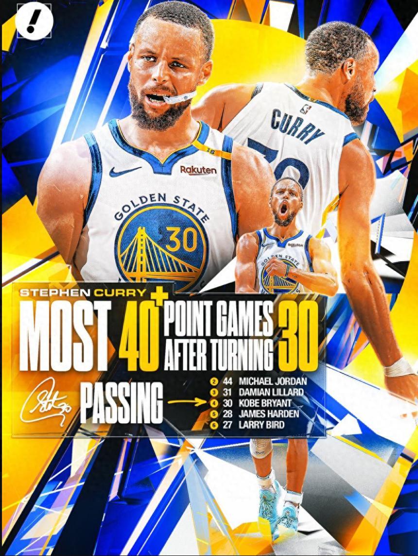 7.庫裏本賽季第四次拿到40+的數據,聯盟35歲以上唯一;