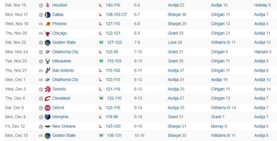 過去的15場比賽開拓者只擊敗了雄鹿、兩場勇士、騎士,就連獨行俠、公牛都輸了。