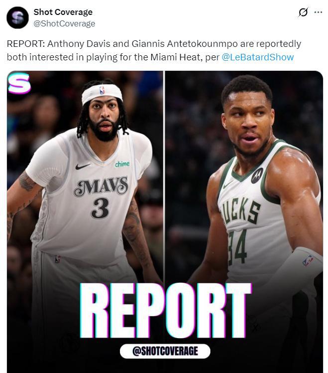 在兩天之前,根據美媒LeBatardShow的報道,安東尼-戴維斯也是邁阿密熱火隊關注的對象,此前獨行俠已經將加福德、戴維斯、拉塞爾、克萊-湯普森等人擺上貨架,熱火如果用報價揚尼斯的籌碼去追濃眉,熱火得到濃眉的概率其實也挺大,熱火太需要一位巨星來止住頹勢。