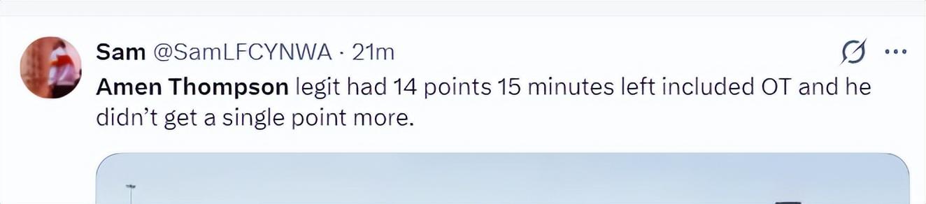 火箭記者在比賽最後15分鐘之前阿門就拿到14分,隨後阿門-湯普森是一分都沒有拿。