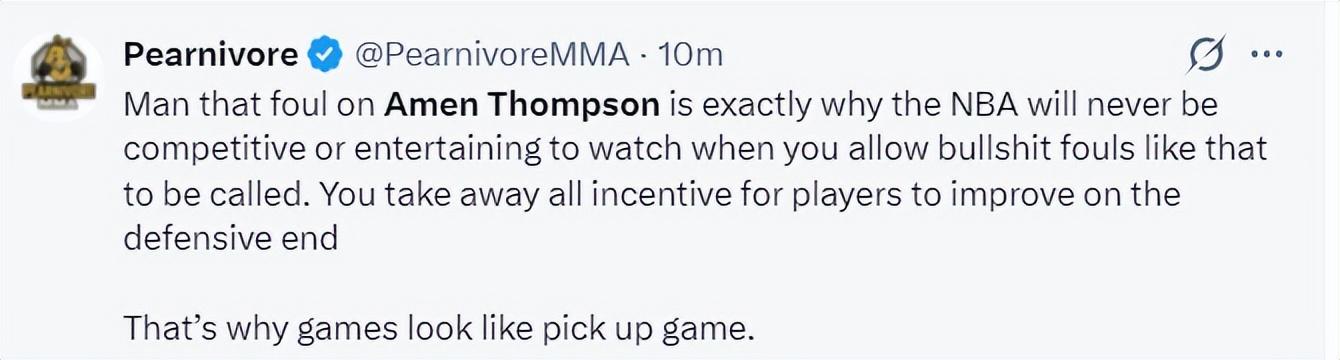 美媒:阿門這場比賽關鍵時刻的糟糕表現恰恰說明NBA不具備競爭力與觀賞性,這種程度的接觸都不被允許還算競技體育嗎。不允許球員防守怎麼提升防守水平。