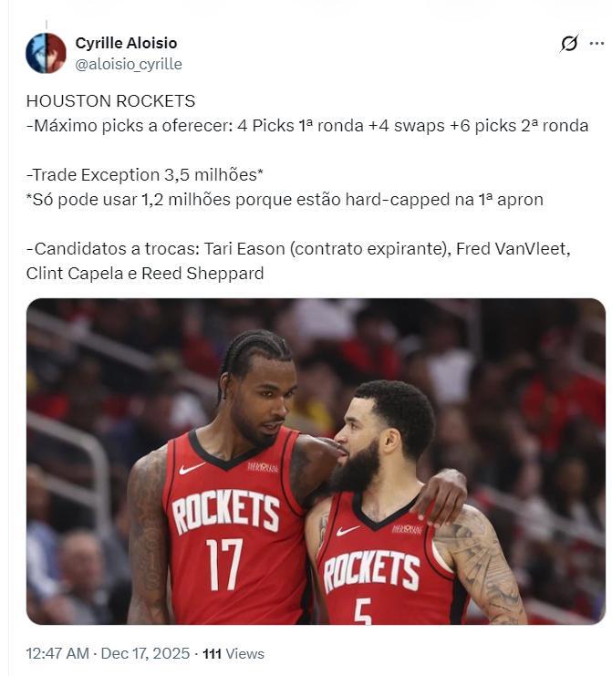 火箭媒體也開始讓火箭球迷投票選出可以用於交易補強的球員,目前謝潑德、伊森兩人的投票率較高,伊森合同最後一年,謝潑德因爲身體天賦受限防守端實際上不契合火箭體系。