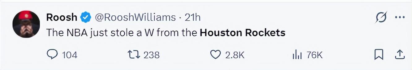 美記Roosh:NBA聯盟又從火箭隊手中偷走了一場勝利。