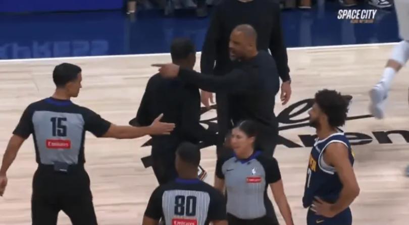 烏度卡第一次暴怒來自於上半場,申京籃下出手被約基奇推搡裁判視而不見,申京攤手追討裁判結果申京喫T,烏度卡衝進來噴裁判:睜開你們的狗眼,張大你們的狗眼吧。烏度卡也喫T。