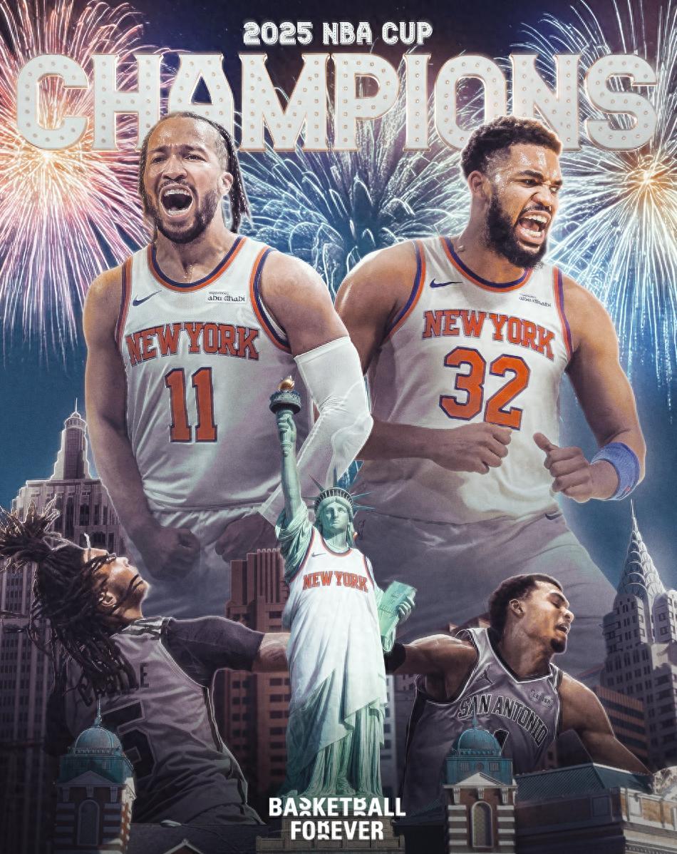 尼克斯大勝馬刺拿到2025年的杯賽冠軍,三屆冠軍分別是湖人、雄鹿、尼克斯,布倫森也成爲詹姆斯、揚尼斯後第三位盃賽的MVP。淘汰聯盟第一雷霆的馬刺此役是一敗塗地,文班亞馬這位超級巨星也被唐斯+米羅直接碾碎。