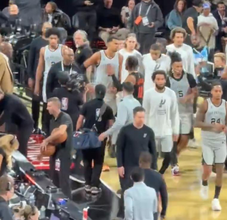 賽後布倫森與馬刺全隊握手時,文班亞馬也沒有理會布倫森,還布倫森拍了一拍文班亞馬的胸口,文班亞馬直接就走了。他全場比賽17中7,三分6中2,拿到18分6籃板1助攻1搶斷2蓋帽。