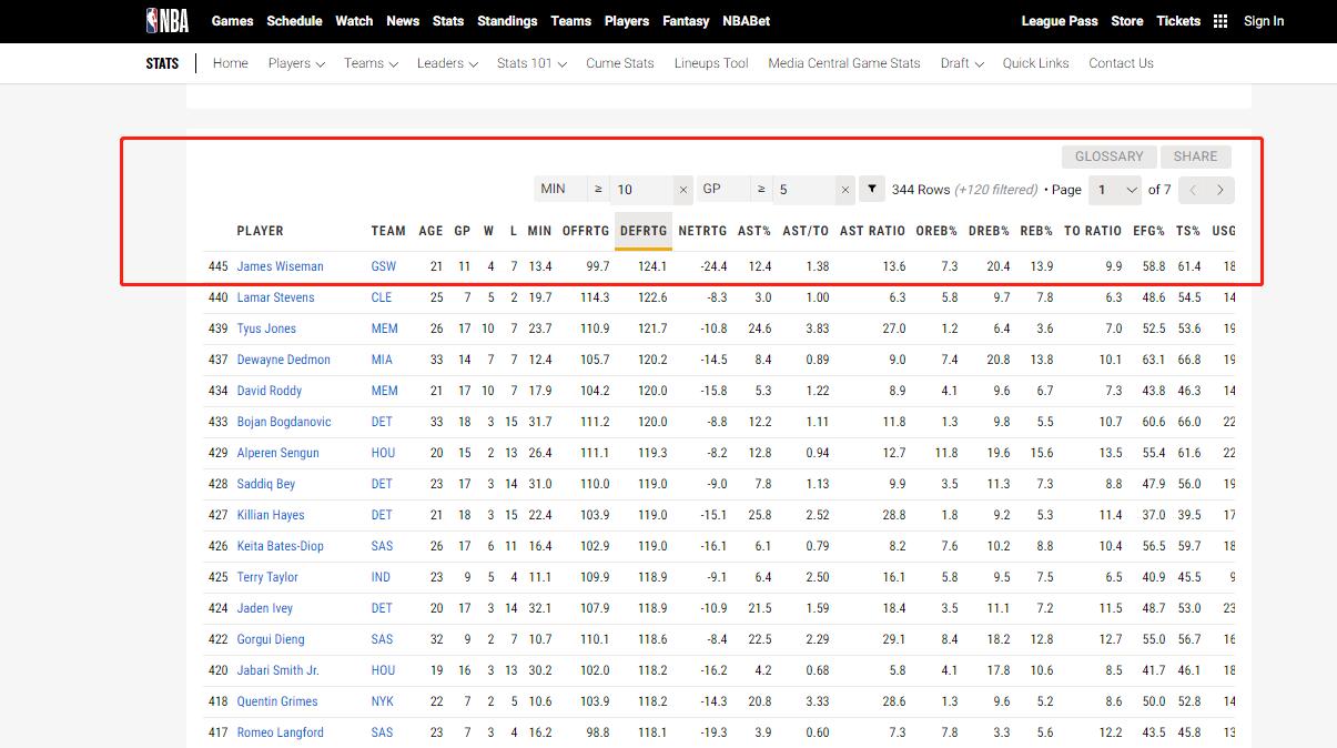 本賽季迄今爲止,懷斯曼防守效率爲124.1,聯盟倒數第一位。