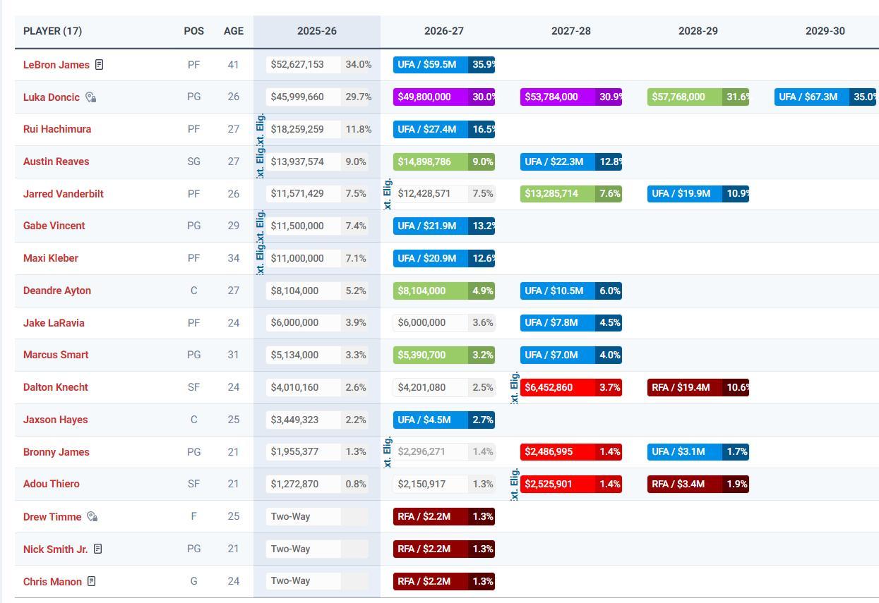 2026年夏詹姆斯5262萬的合同到期,裏夫斯將跳出他1439萬的球員選項,這裏湖人等於就清理了6700萬左右的薪金空間,湖人也可以跟裏夫斯達成五年2.87億的超級頂薪,那麼裏夫斯就會成爲揚尼斯最好的交易籌碼。