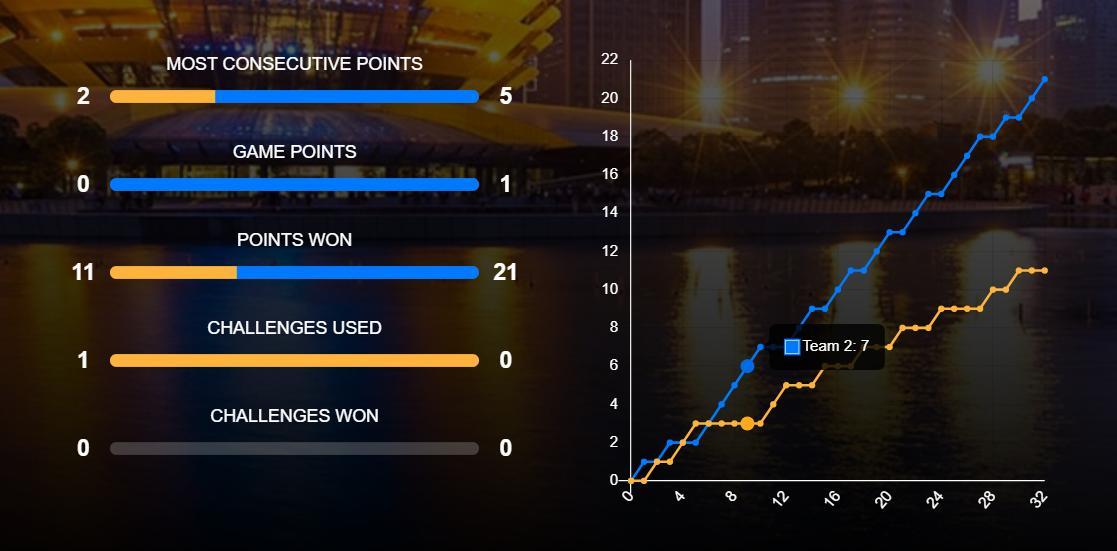 這場比賽第一局開場,兩人1-1打到3-3,隨後石宇奇就開始發力了直接7-3拉開差距,隨後11-6繼續維持領先優勢,石宇奇13-7領先周天成6分後這一局的局勢已經完全被石頭掌控,最終石宇奇21-11輕鬆拿下。