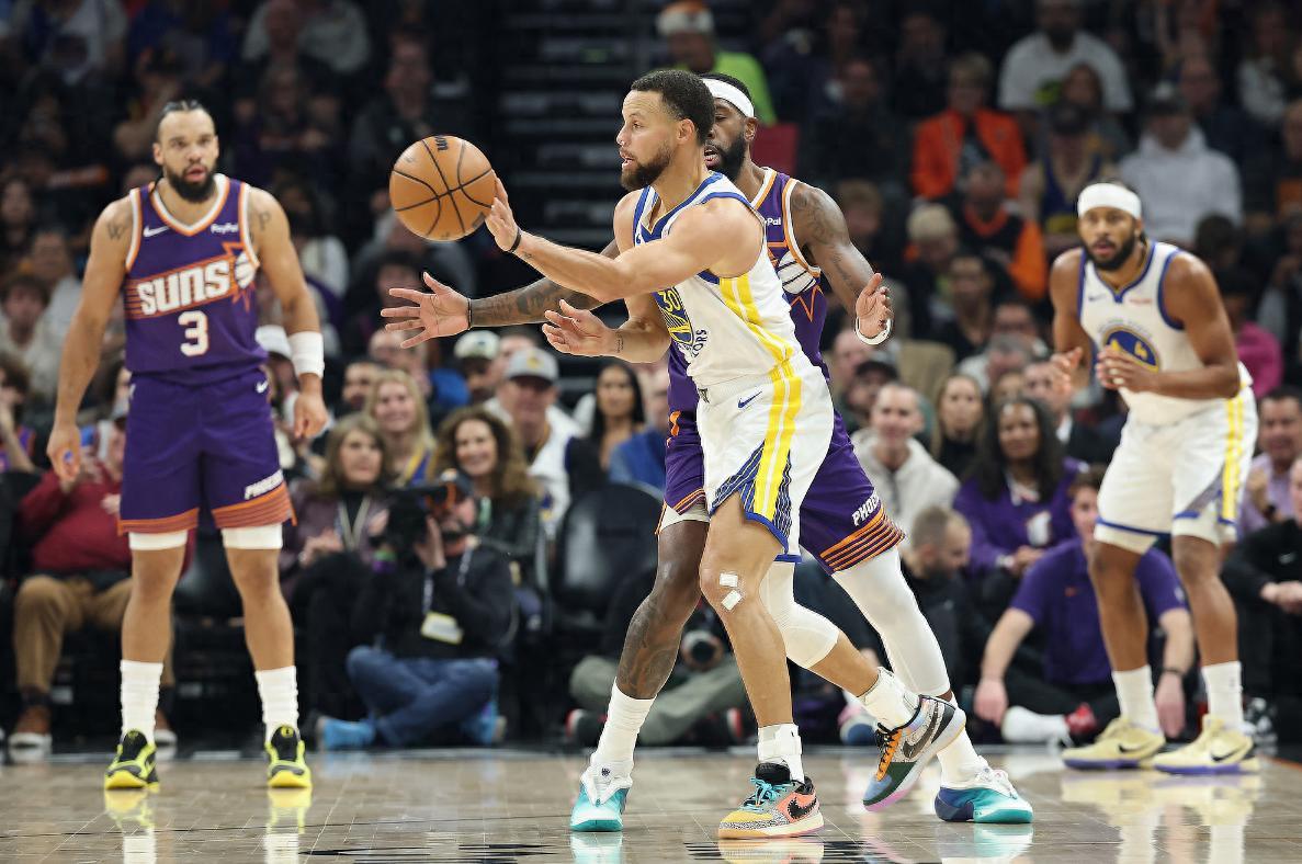 末節開場庫裏先休息太陽已經完成反超了,庫裏登場後連續三次出手都偏出,太陽領先到5分(兩個球權),太陽延續一波8-0打停科爾。進入最後38秒勇士還落後5分,庫裏三分再度打鐵但倒地了,裁判看回放給了狄龍惡犯,庫裏兩罰全中巴特勒三分扳平,布克關鍵中投,庫裏造犯規兩罰絕平,狄龍三不沾,但古德溫逆天前場籃板被穆迪犯規,古德溫兩罰一中絕殺。