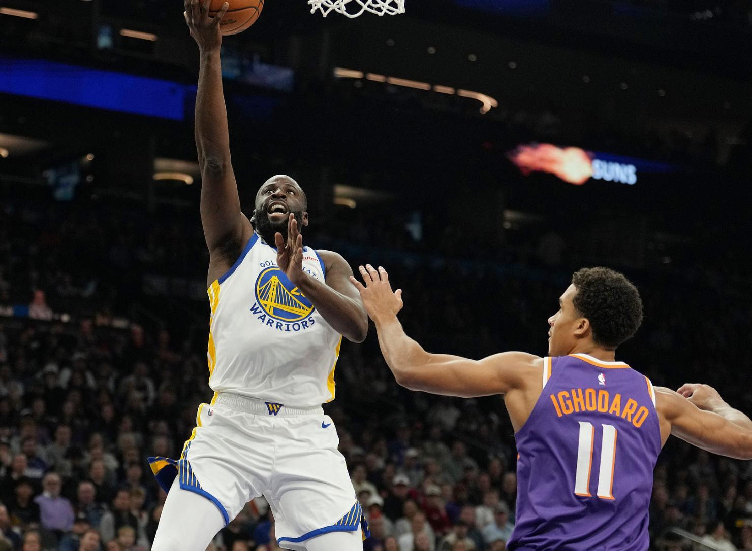 這場比賽對於勇士來說非常重要,勇士西部第八,太陽西部第七,此役一場可以當兩場,關鍵是灰熊已經逼近勇士第八的席位。科爾讓庫明加重返輪換,庫裏開場的手感一般,5中2+三分3中1只拿到5分1助攻,但勇士是領先太陽的。