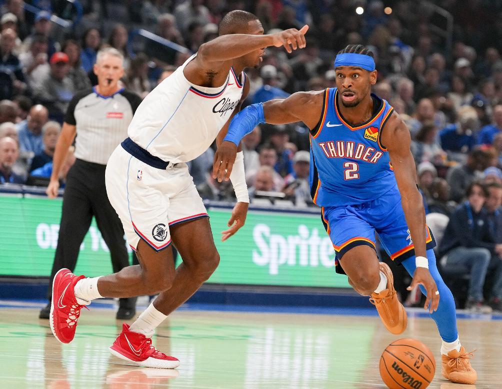 賽前泰倫盧談到哈登的身體,他認爲哈登可以很快康復歸隊,而且他說快船跟西部第十隻差4個勝場,他堅信快船可以重振旗鼓。首節鄧恩對SGA的防守還差成功他只有7中2,也因爲SGA的進攻表現不佳,雷霆整節只拿到27分,但霍姆格倫與傑威兩人的狀態還在,OKC是絲毫不慌的。
