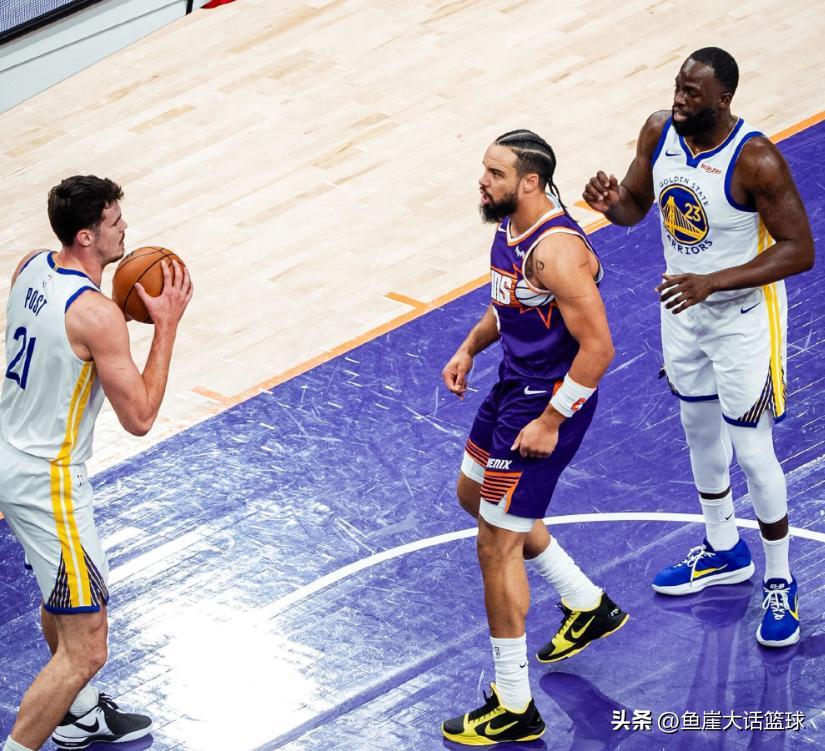 第三節比賽勇士打出一波7-0,布克投籃命中後巴特勒內線得分,奧尼爾命中三分後狄龍補籃得分,接下來太陽更是打出一波13-4追平比分,波傑姆斯基投籃得分後庫裏命中三分,鄧恩內線得分後古德溫罰球2中1,之後兩隊頻頻打鐵,波傑姆斯基得分後布克罰球2中1,三節比賽結束太陽落後1分。第四節比賽吉萊斯皮連得5分,波傑姆斯基連得5分後太陽打出一波9-0,勇士打出一波6-0後布克投籃命中,波傑姆斯基連得5分後吉萊斯皮罰球2中2,布克連得4分後狄龍突破得分,巴特勒連得4分後布克投籃命中,庫裏罰球2中2後巴特勒命中三分,布克投籃得分後庫裏罰球2中2,後面古德溫罰球2中1,最終勇士惜敗太陽。