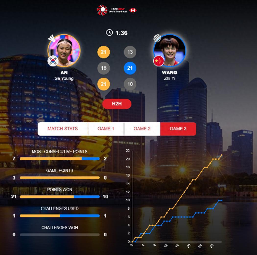 北京時間12月21日,BWF年終總決賽女單決賽,安洗瑩以2-1擊敗王祉怡奪冠,三局比分:21-13、18-21、21-10。安洗瑩本賽季面對王祉怡完成8連殺,王祉怡生涯面對安洗瑩已經4勝16負。