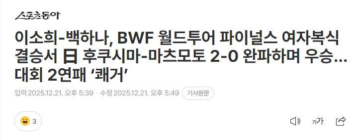 文中還寫道,總決賽前2025賽季李白組合參與了13次國際大賽,僅僅在丹麥750賽事拿到冠軍,沒想到她們能在年終總決賽掃去陰霾完成衛冕,這已經算是一個不小的爆冷。