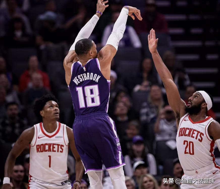加時賽施羅德突破得分,阿門罰球2中1後德羅贊罰球2中2,阿門扣籃得分後杜蘭特反擊得分,德羅贊罰球2中2後施羅德突破得分,史密斯命中三分後施羅德罰球2中2,史密斯連得4分後施羅德命中三分,最終火箭大爆冷輸給國王。這場比賽威少打得相當出色,沒有威少國王根本沒有辦法打進加時賽,可這樣的威少依舊是在關鍵時刻犯錯,加時賽最後階段威少三分打鐵不說,後面還讓史密斯造成三分犯規,威少這一系列操作讓國王陷入巨大被動中,也就是後面施羅德命中三分,否則威少會受到很多的批評,全場比賽結束威少得到了21分13籃板4助攻的數據。