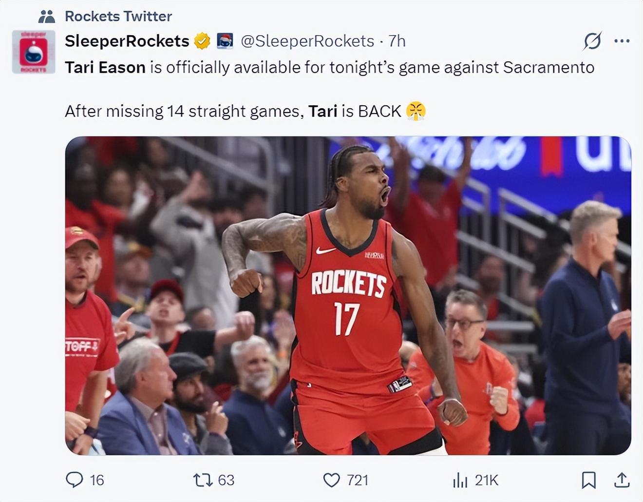 火箭賽後也只曬出了伊森一人的數據歡迎他迴歸,如果伊森此役沒有登場時間限制,火箭大概率就贏了,很明顯火箭官方也對被西部倒數第一逆轉感到非常不滿。