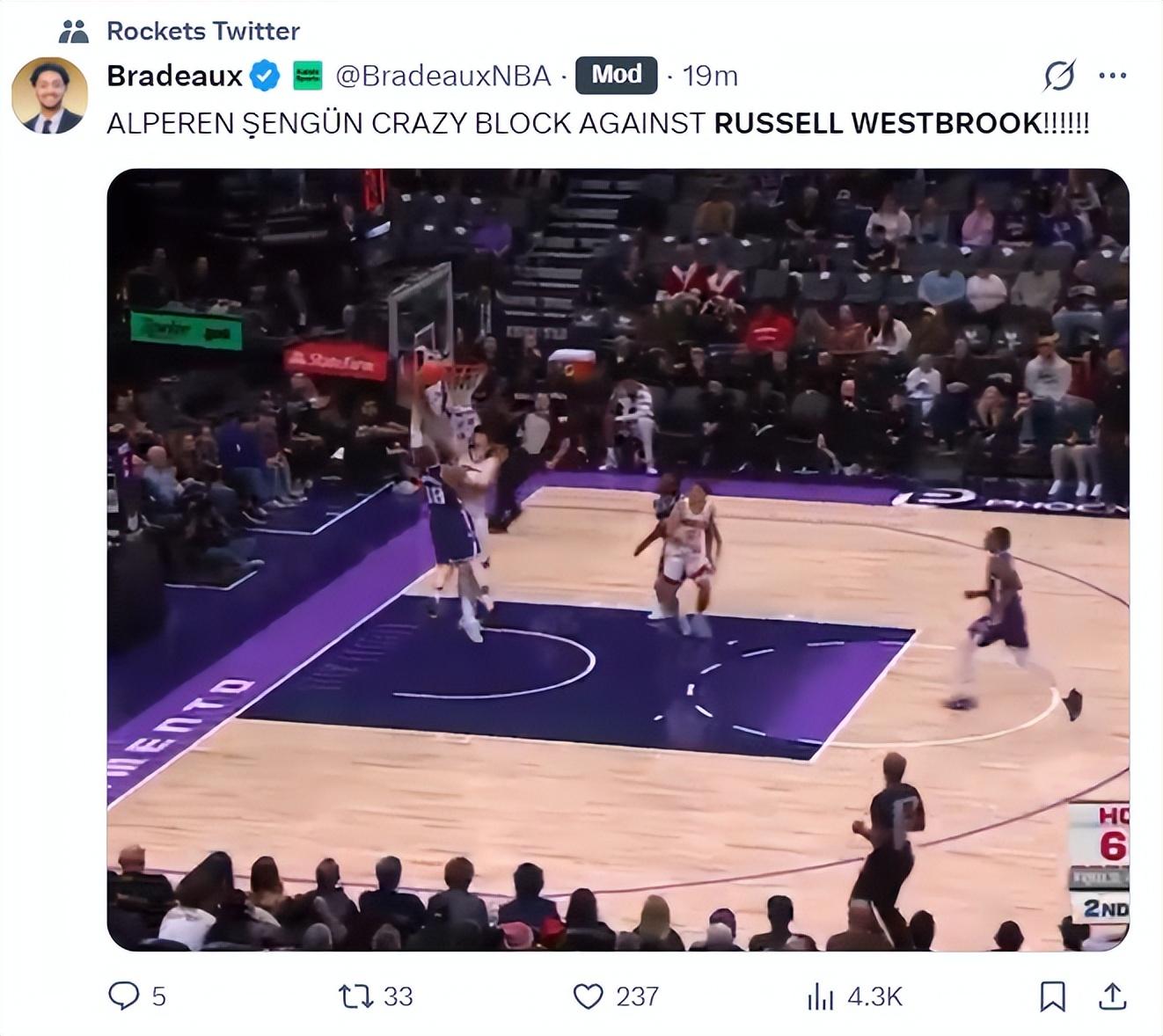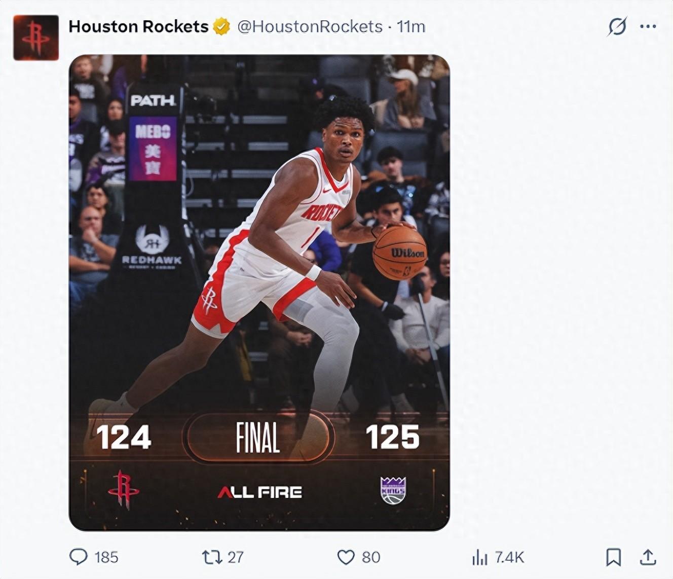 末節火箭一度領先到14分,結果國王打出12-0烏度卡連叫兩個暫停,還是申京單打雷諾關鍵球,隨後2+1暴扣穩定戰局,申京製造雷諾籃下一個失誤,申京又拼一個前場籃板,申京想造三分犯規不中,杜蘭特三分絕殺也不中。