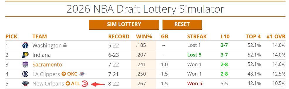經過這一波五連勝後,鵜鶘的狀元籤概率只剩下10.5%,而快船的狀元籤概率升12.5%,換言之雷霆的狀元籤概率12.5%,鵜鶘這是在暗助雷霆?