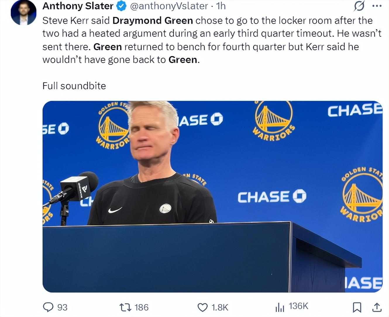 第三節追夢因爲一次失誤,科爾叫暫停後兩人發生了激烈的爭吵,隨後追夢就直接進入了更衣室,格林18分鐘,5中4拿到9分7籃板2助攻1失誤,正負值-5。