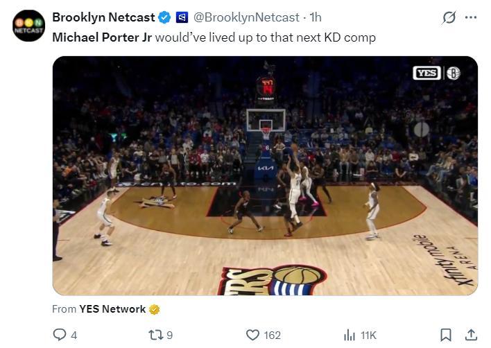 賽前籃網媒體就認爲來到籃網的小邁克爾-波特就如同凱文-杜蘭特一般,因爲小波特來到籃網後已經場均25.6分,三分球命中率高達40%,他一掃在掘金時期的陰霾。
