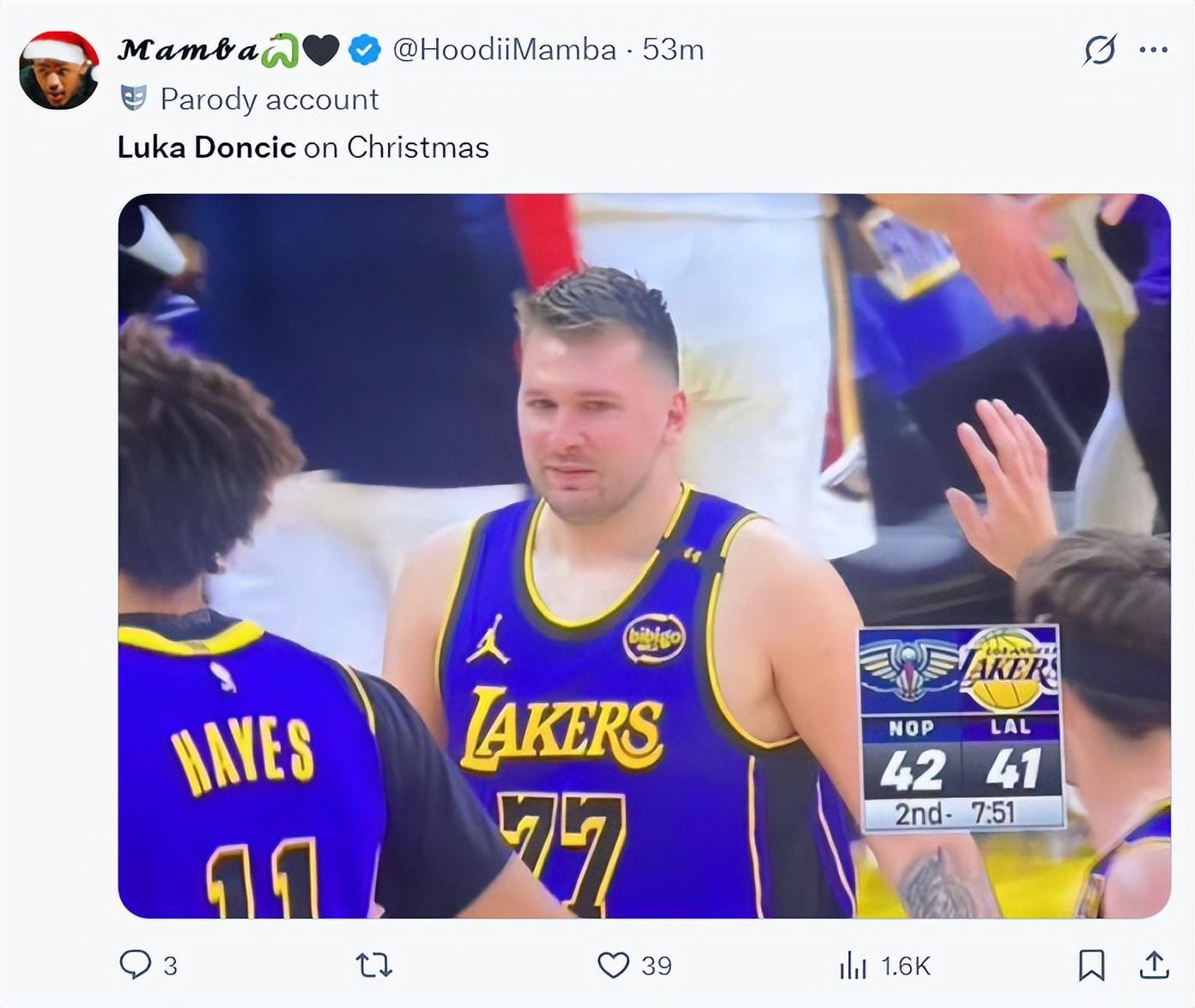 開場東契奇的表現太差了,各種低級失誤,連續4次失誤讓湖人開場崩,湖人媒體嘲諷:年終大戰的東契奇又跟上賽季那個大胖子一樣。首節東契奇4分4助攻4失誤4籃板令人無奈。
