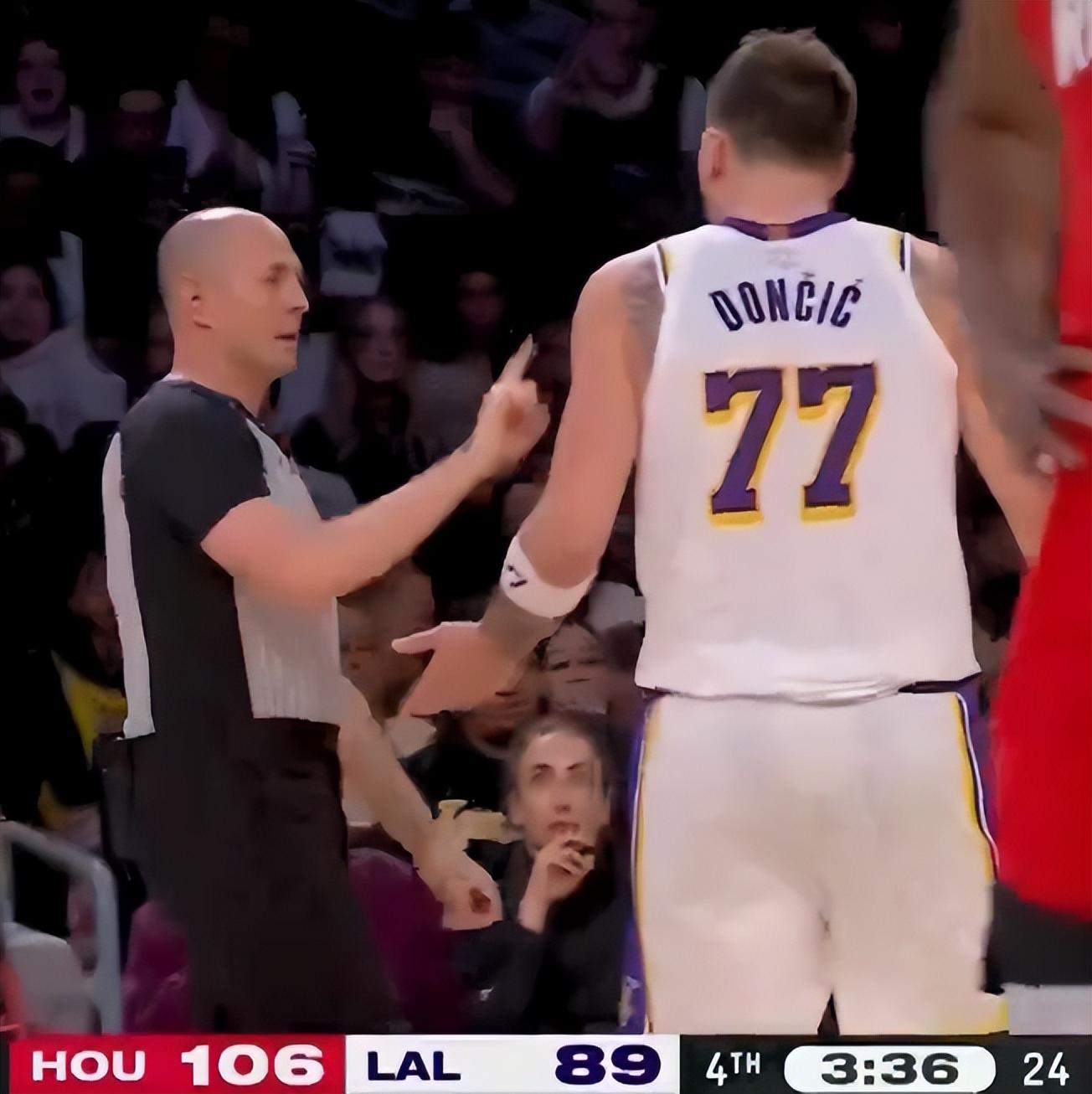 末節東契奇登場3分鐘竟然1分沒拿,還在防守端杜蘭特時賠上犯規,東契奇說自己沒犯規朝着裁判一頓輸出,裁判給了他賽季第八個技術犯規,東契奇又攤手,湖人繼續落後20+。