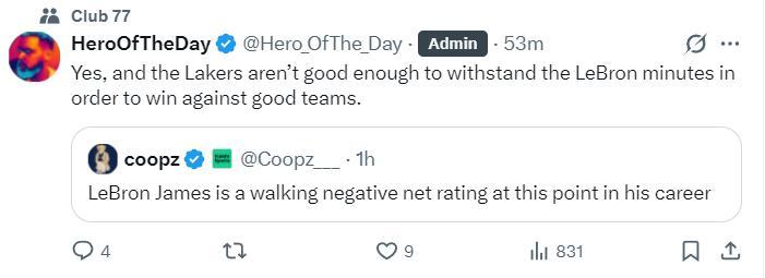 美媒HOT轉推後寫道:沒錯,湖人的硬實力無法承擔勒布朗高超長的登場時間,所以無法在打強隊時取勝。