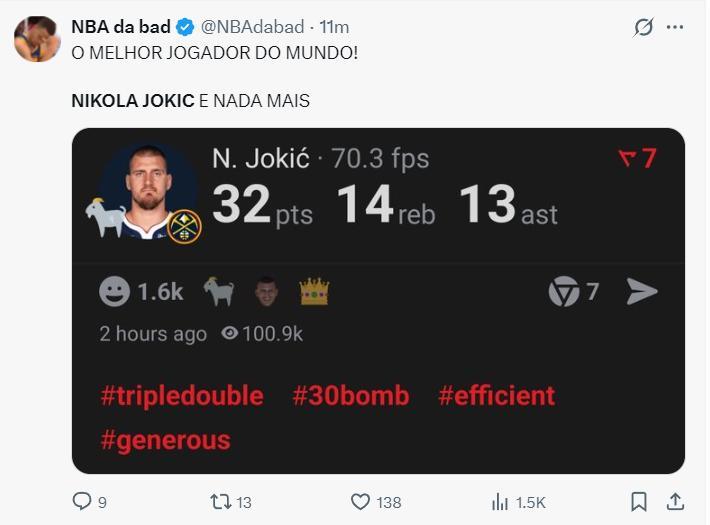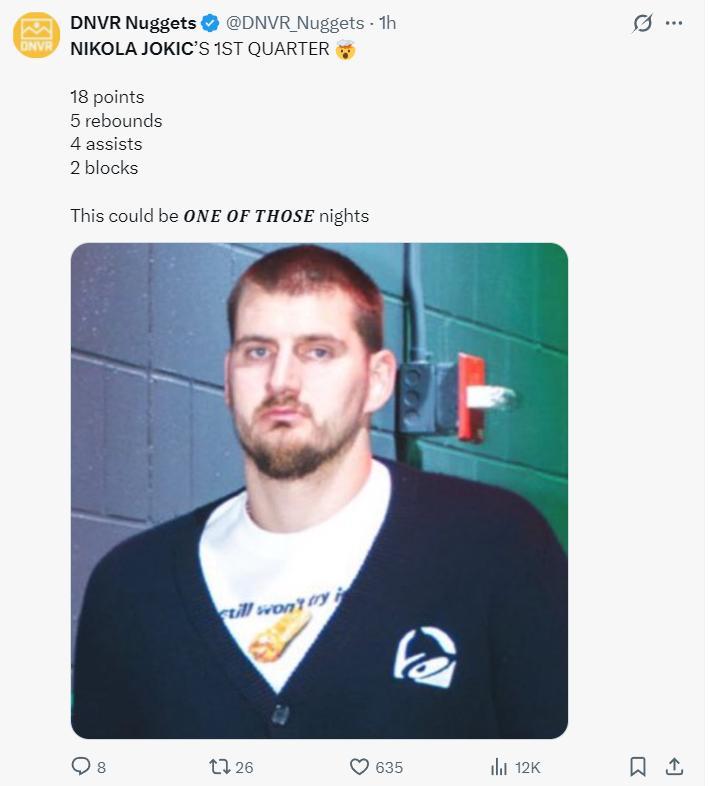 很明顯約基奇這場比賽戰意很濃,首節他就8中6+三分1中1+罰球5中5,拿到18分5籃板4助攻2蓋帽,可以說此役跟前兩場判若兩人,約基奇想在主場爲球迷們帶來一場表演秀。