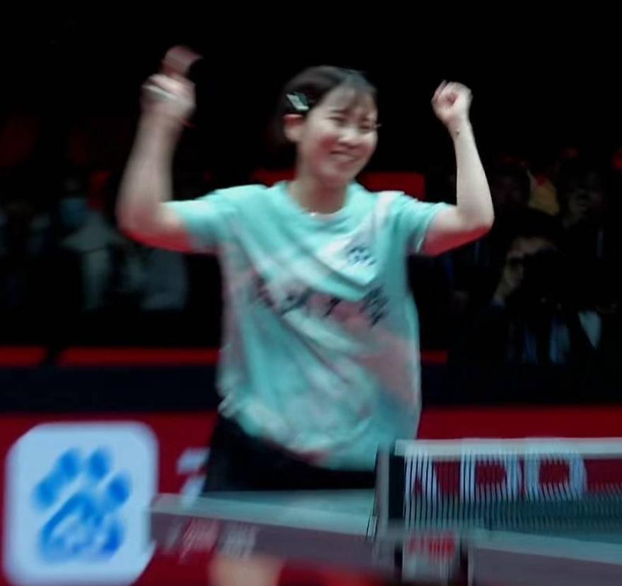 決勝盤平野美宇VS劉煒珊,平野美宇沒有給劉煒珊一點機會直落三局拿下,第三局拿到決勝分後平野美宇是雙拳指天狂笑,這一刻她成爲深大的超級英雄。