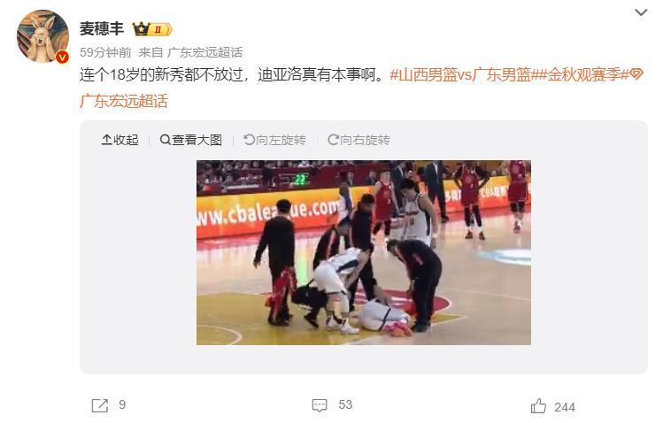 這場比賽迪亞洛絕對是一個亮點,他第三節對一個18歲的新秀陳家政來了一個捨身衝撞,陳家政直接被撞倒在地,隨後隊醫進場奎因拿毛巾遮擋倒地不起的陳家政,好在陳家政的傷勢不嚴重。