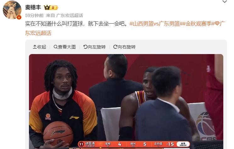 麥穗豐:不懂打籃球你就下去坐着吧。(此役全場比賽迪亞洛16分鐘,10中3+三分1中1拿到9分7籃板4助攻2搶斷蓋帽,正負值-13)