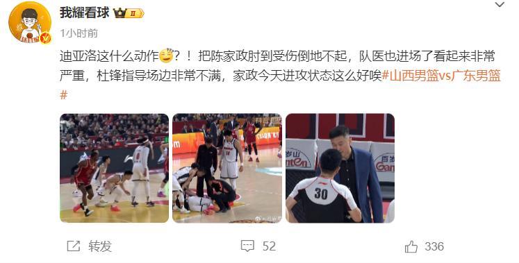 廣東自媒體:這迪亞洛什麼動作?肘擊陳家政倒地不起,隊醫進場看起來非常嚴重。(結果並不嚴重,陳家政末節還打了7分鐘)