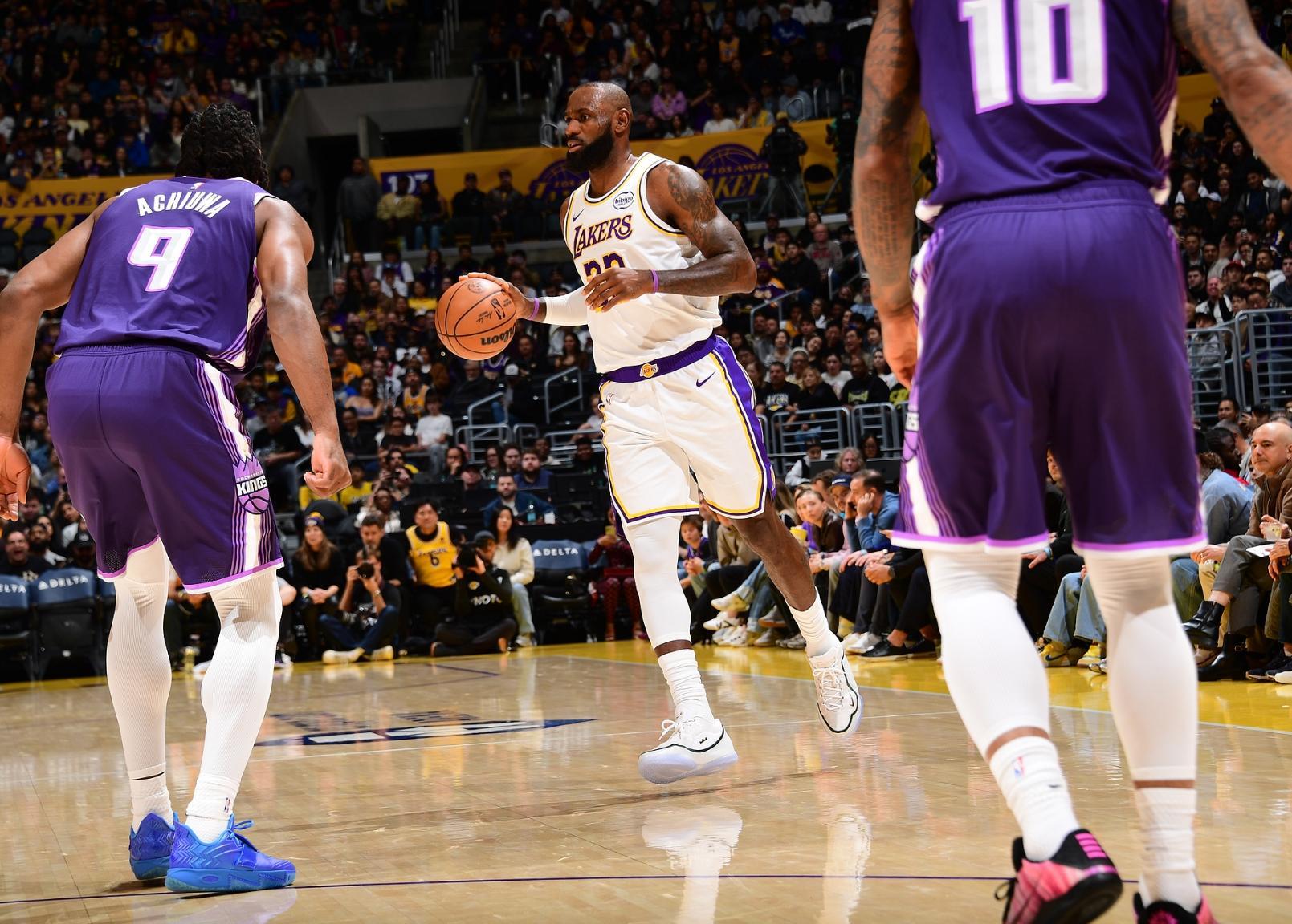 末節老詹先帶着四個替補打,老詹助攻阿彪暴扣,下一次擊地傳球被施羅德搶斷,老詹持球突破完成2+1完成20+的數據,國王縮小到20分雷迪克暫停。詹姆斯突破明顯被犯規但沒有吹,他回過來暴扣釋放,最後4分鐘44秒國王放棄比賽了。