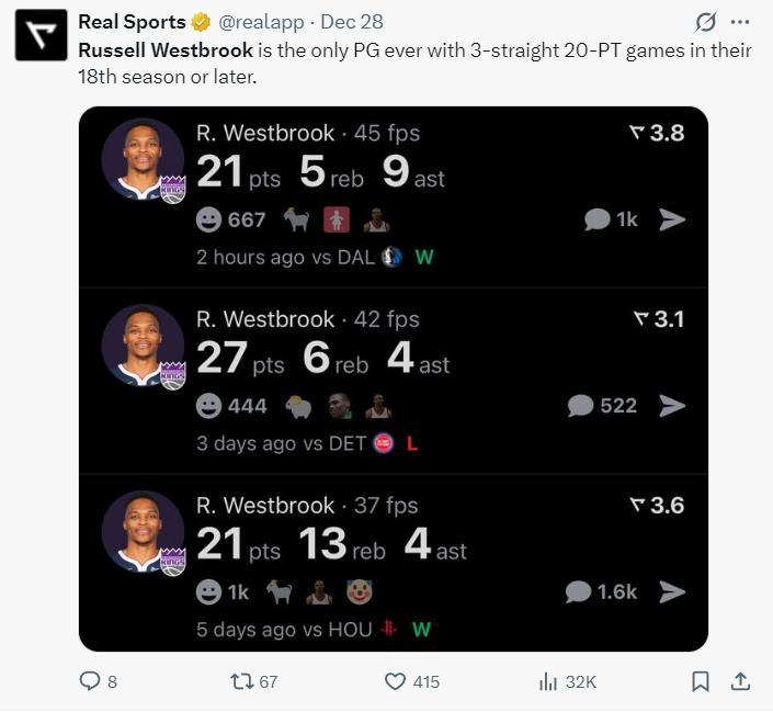 北京時間12月29日,國王以101-125不敵湖人。這場比賽拉塞爾-威斯布魯克的表現一言難盡,重返斯臺普斯本該是爆炸復仇的表現,可他此役進攻端多次被搶斷,上空籃還不中,面前4-5米沒人的三分也哐哐打鐵,少爺這場復仇之戰是一敗塗地,全場比賽17中6拿13分6失誤。