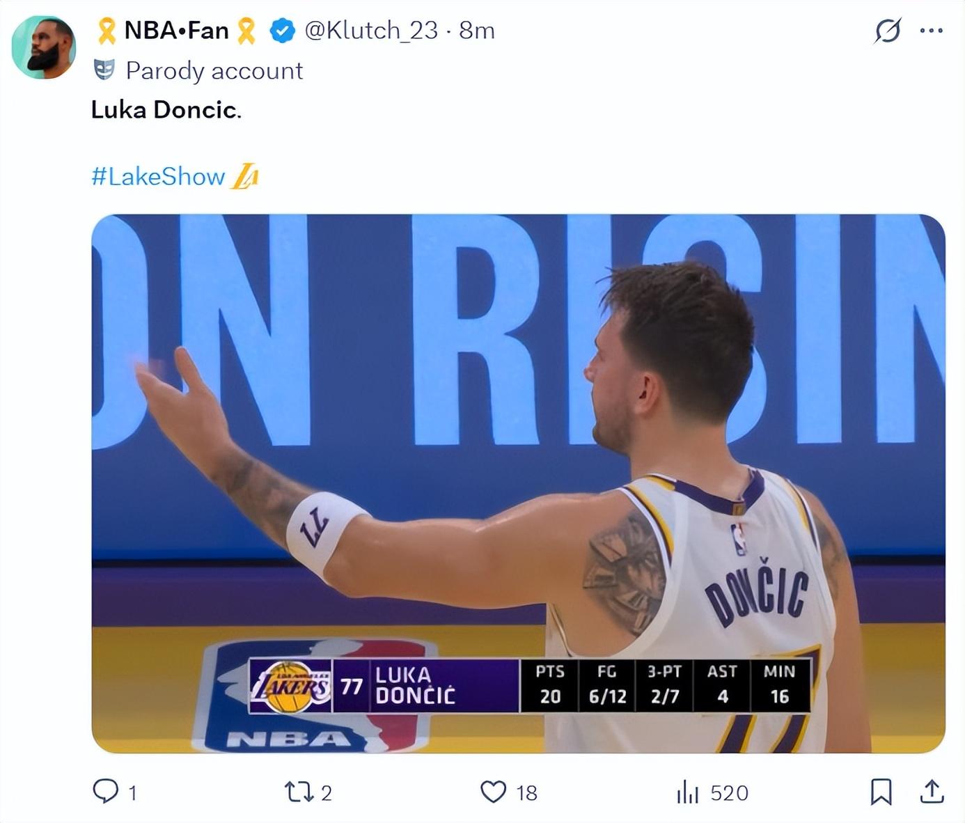 末節東契奇先休息,詹姆斯帶隊又將分差拉開到26分,東契奇登場就命中一個撤步三分球,兩隊的分差奔着30+去了,雖然雷迪克換下東契奇比賽走向完結。