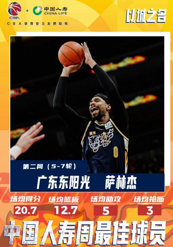 薩林傑第二週場均20.7分12.7籃板5助攻3搶斷,成爲周最佳球員。