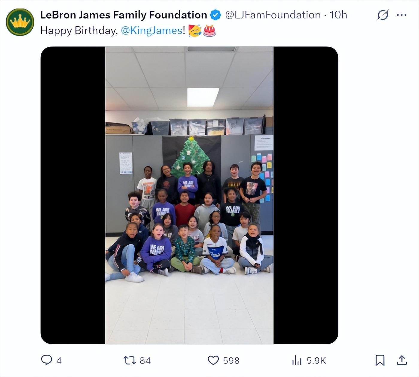 湖人隊官方也祝賀了勒布朗41歲生日快樂。